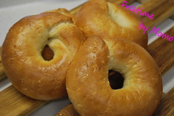 ちょっと焼き色濃い目のベーグルです(#^.^#)