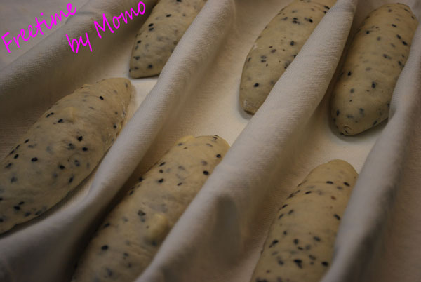 天然酵母で 黒ゴマを入れて 生地の半分はプレーン、残りはチーズを混ぜました^^