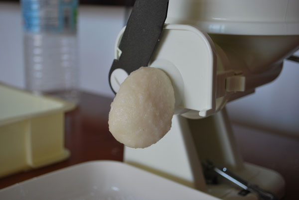 これくらい出てきたら 上に見える 黒い遮断機みたいなもので お餅を切ります^^