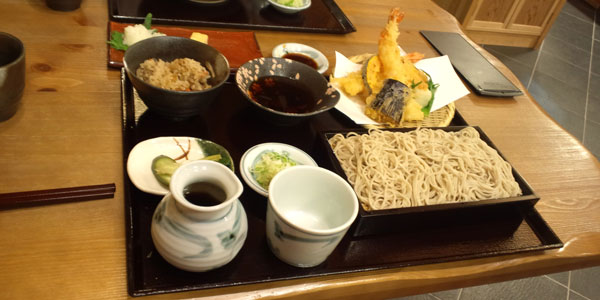 主人の頼んだ天せいろと炊き込みご飯のセット