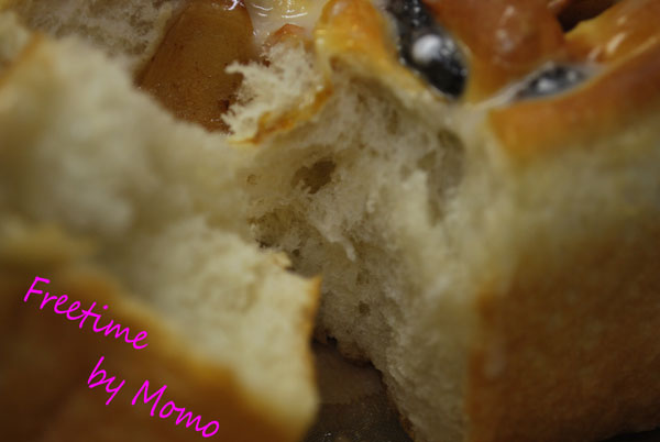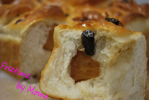 ちぎったところに丁度りんごとレーズンが顔を出してくれました(#^.^#)