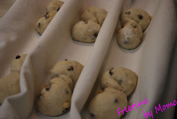 ハード系のパンはこうやって キャンパス地を使って布とりしながらの二次発酵です。