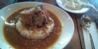 カレーの上にのってるのは 豚肉の煮込みです。