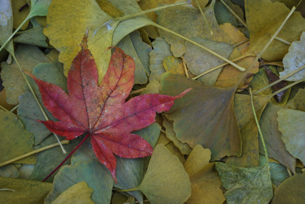 銀杏の葉の中に 紅葉の赤が鮮やか(*^。^*)