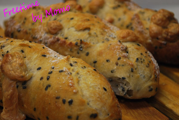 で、 実は 今日チーズも入れる予定だったのに 最初に成型した上の画像の一本はチーズを入れるのをうっかり忘れたんです (*>ー<*)