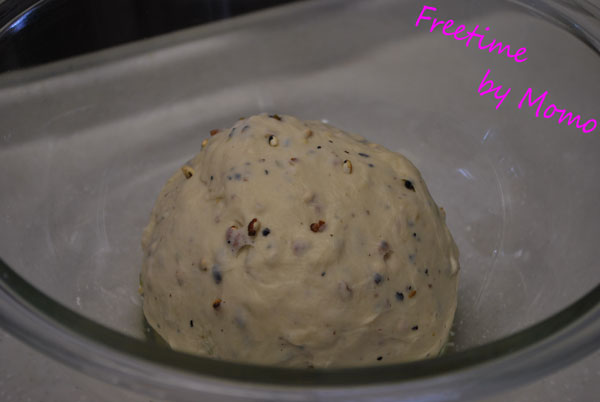 一次発酵終了後に入れようかと 1分考えて すぐに混ぜておきました。
