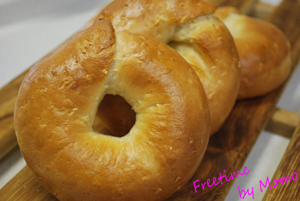 ちょっと焼き色濃い目のベーグルです(#^.^#)