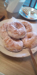 今日は天然酵母のドーナッツとベルギーワッフル^^