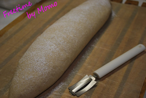 50分くらいたったら 強力粉をふって クープナイフでクープをいれて