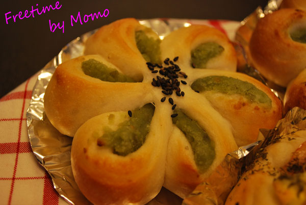 これは 花形成型にした 「ずんだ餡パン」