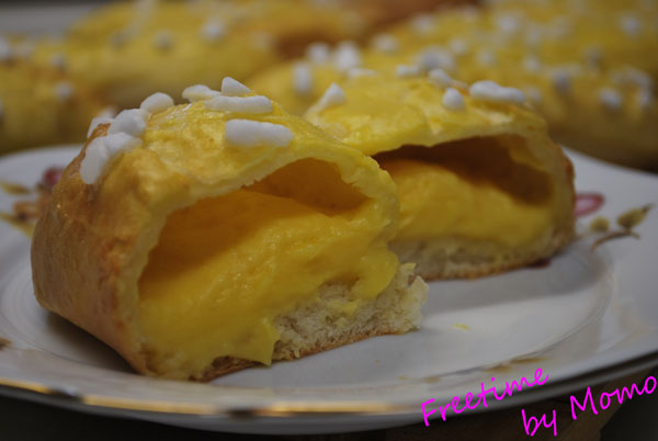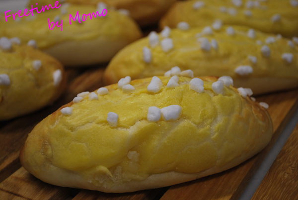 これは手作りカスタードクリームのクリームパンの上に シュークリームのシュー生地をのせて