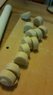 向かって右側は そのクロワッサンの生地をクルクル丸めて輪切りに。