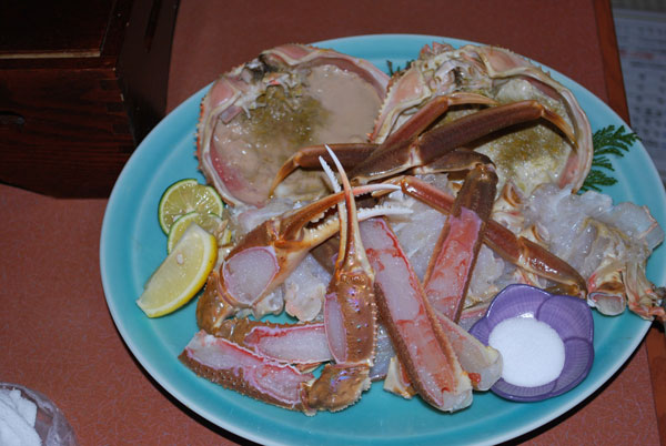 宿での夕食の蟹