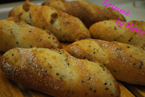 天然酵母で 黒ゴマを入れて 生地の半分はプレーン、残りはチーズを混ぜました^^