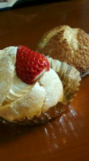 クッキーシュークリームと苺シュー。
