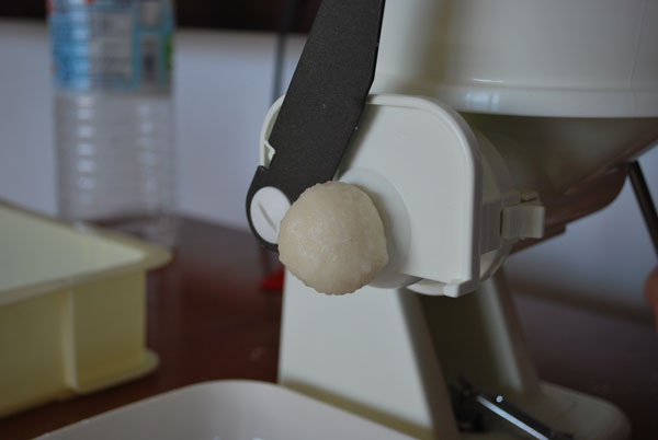 手動でクルクルハンドルをまわすと こんな風にお餅が顔を出してきます(^u^)