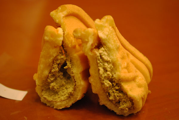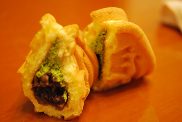 そこの抹茶を使っている抹茶クリームのワッフルなんです。